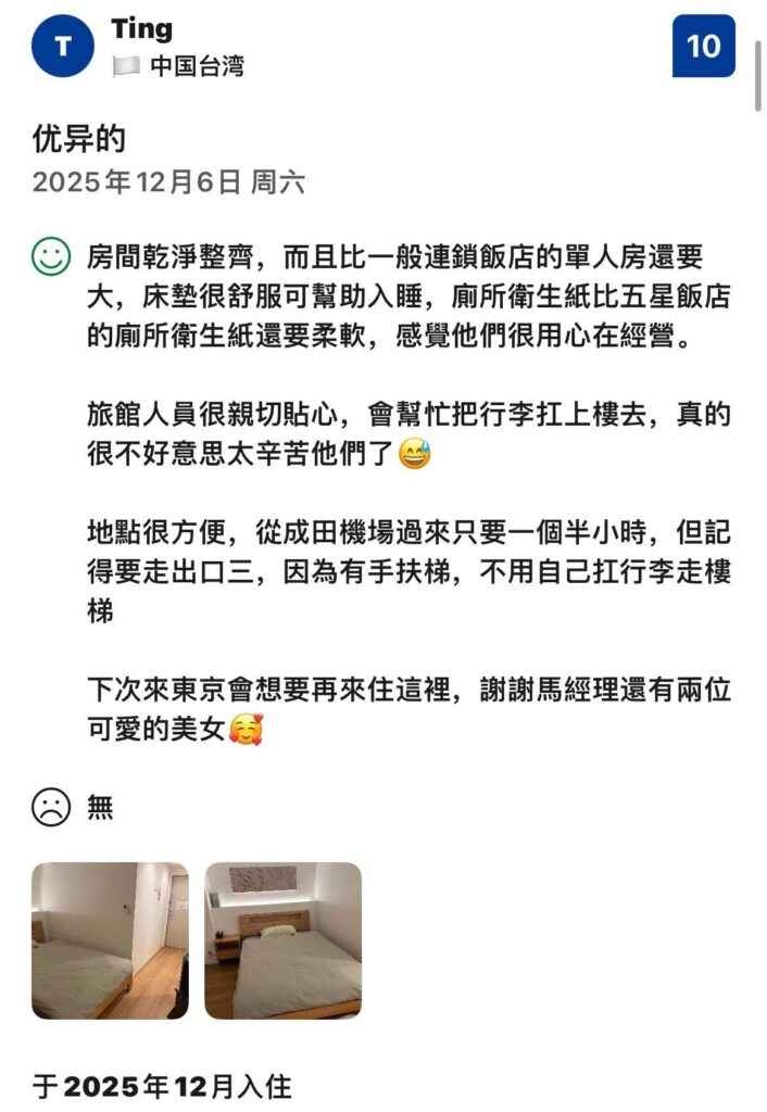 その翌月、12月には、同じく台湾からのTing様が、さらに細やかな気づきを満点レビューに寄せてくれました。