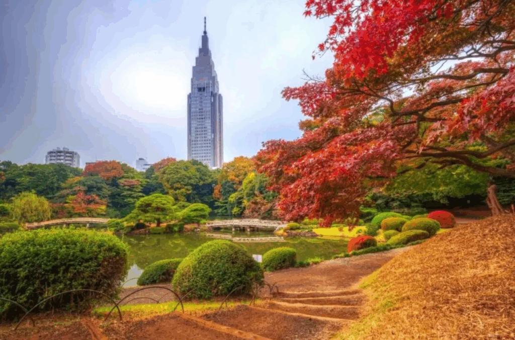 新宿駅から徒歩約10分で、新宿御苑に到着します。