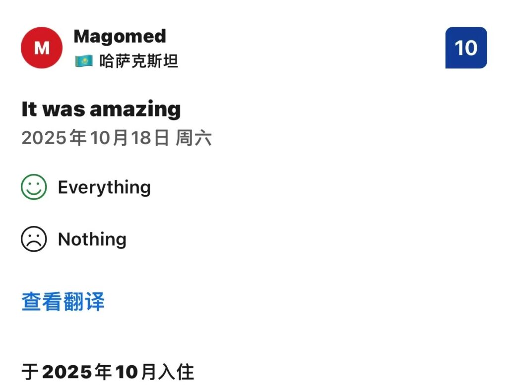 Magomedさんは、ホテルのオンライン評価に “It was amazing” と記し、