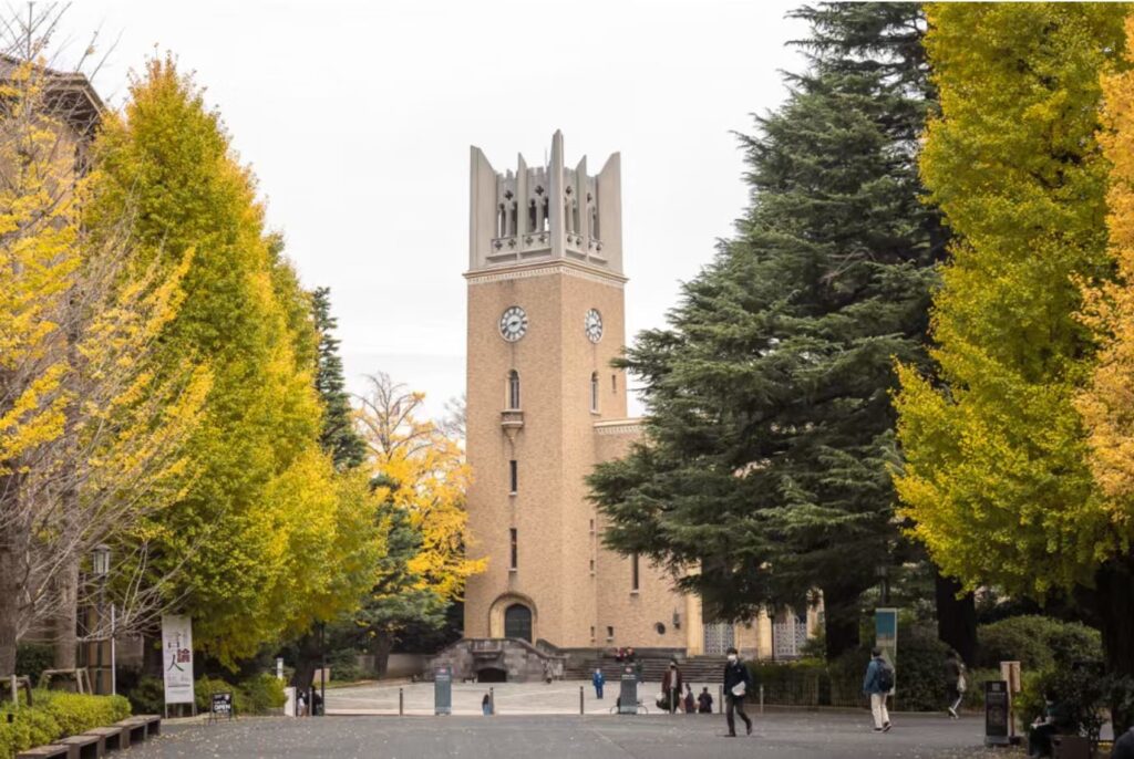 早稲田キャンパスへ向かう途中には、レンガ壁に深い緑の蔦が這い、