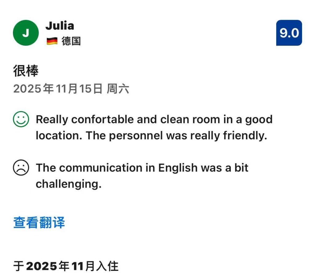 ドイツ人宿泊者、Juliaさんからいただいた「9.0点」の評価は、