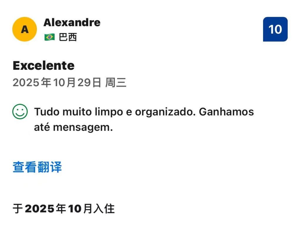 “Excelente! 全てが非常に清潔で整っていました。