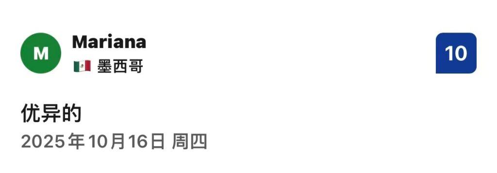メキシコからのMarianaさんも同様に満点の高評価をくださいました。